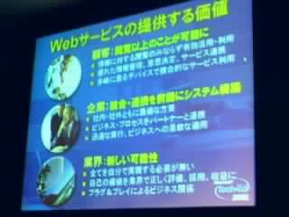 「現在のウェブサイトは、リンクでページはいろいろと結ばれているが、情報が結ばれていないので、先のほうへ行ってまた同じことを入力しなければならなくなったりする。ドットネットは、複数のウェブサービスを統合して利用することができ、アプリケーションやプラットホーム、ビジネス間における相互運用が可能という点で、非常に革新的だといえる」と強調した。
