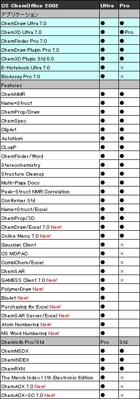 これらのソフトを含むスイート製品である「ChemOfficeウルトラ2002」には、さらに電子版メルクインデックスが同梱されている。第13版を完全に電子化したもので、構造式による完全一致・部分一致検索、テキストおよび数値フィールドの検索機能も備えている。メルクインデックスが電子メディアで提供されるのは今回が初めてであり、国内でも多くのユーザーが関心を示しているという。