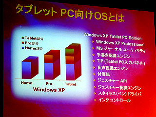 これをサポートする新OSは、WindowsXP Professionalに手書き認識機能、音声認識機能、手書き用ユーティリティーなどを追加したスーパーセットになる。このOSは単体では発売されず、パソコンメーカーへのOEMの形でのみ提供される。