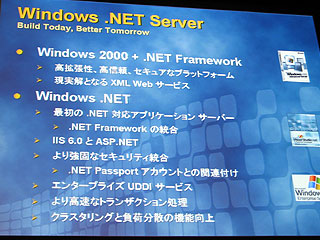 サーバーOSとしては、現時点ではWindows2000が利用できるが、次期のWindows .NET Serverが控えている。バーンズ氏は「5ナインを超える稼働率を実現できる信頼性、32プロセッサーをサポートできるスケーラビリティ、そしてセキュリティに万全を期す」と説明した。