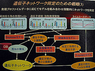 さて、遺伝子発現ネットワークの研究は、まずマイクロアレイなどの遺伝子発現プロファイルデータを用いて遺伝子間の相互作用を推定することからスタートする。そして、さまざまなネットワークモデルを当てはめ、目標の発現パターンに合致するネットワークの候補を洗い出すという手順をとる。しかし、一定の発現パターンに対して同じような挙動を示すネットワーク構造が複数存在するため、真のネットワークを同定するのは容易ではない。実際には、得られたネットワーク候補群をもとに次なる実験指針を立て、再度発現解析などを実施、その実験データを用いてさらにネットワーク候補を絞り込んでいくというルーチンワークが必要になる。 VoyaGeneはこうした研究プロセス全体を総合支援するシステムとして開発された。