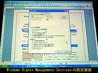 次に、機密情報を守る新技術として“ライツマネジメントサービス”(RMS)が紹介された。これは、ファイルにアクセス制限をかけるというよりも、情報の中身に鍵をかけるための技術で、例えば特定の電子メールの転送や印刷、コピー&ペースト、画面キャプチャーを禁止したり、メールをみる期限を設定したりすることができる。文書ファイルに対しても、同様に閲覧、複製、変更、印刷、プログラミングアクセスに制限をかけたり、参照できる有効期限を設定したりすることが可能。実際に印刷が禁止されていれば、メニューの印刷の項目がグレーになって使用できない状態になる。コピー禁止の場合も同様で、コピーや貼り付けの機能が働かない。設定は簡単で、ツールバーに追加されているアイコン(進入禁止の道路標識に似ている)をクリックするだけで、細かなアクセス許可を指示できる。