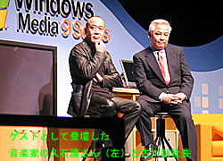 2003.01.30−マイクロソフトは29日、「Windows Media9シリーズ」(ウィンドウズメディア9)の提供を開始、それに合わせて発表記念イベント「デジタルメディア・デイ」を開催した。米マイクロソフトの古川享副社長(アドバンスドストラテジー&ポリシー担当)が「Media in the Digital Decade −次世代のデジタルメディアはここからはじまる」と題して基調講演を行い、高画質・高音質のデジタルメディアをインターネットで本格的に配信できる時代になったことを訴えた。
