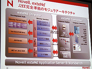 2003.02.22−ノベルは、J2EE(Java2エンタープライズエディション)をベースにしたウェブサービス開発・運用のための統合プラットホーム「ノベルexteNd4.1」(エクステンド)を開発、3月14日から出荷を開始する。昨年7月に買収したシルバーストリームソフトウエア社の技術をノベルの“one Net”戦略に組み込んだもので、既存のシステムをウェブサービス化してアプリケーション統合を行うことを可能にする。ソフト価格は1,260万円から。