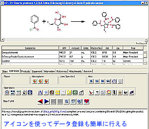 ナレッジベースは3ヵ月ごとに2,000件ずつ増やす予定だが、ユーザーが自分でデータを登録することもできる。入力操作も簡単に行えるように工夫されており、既存データをテンプレートに利用できるほか、使用器具や反応温度などの条件設定もアイコンを使って指定できるので、実際にはほとんどタイプすることなく入力作業が行えるという。