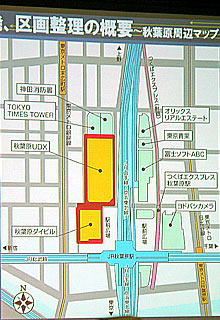 一方の秋葉原UDXは延べ床面積が約16万平方メートルで、集客のための機能をメインとしている。地下1階−3階にはレストランやカフェを集めるほか、大規模なイベントスペースやショールームなどを配置する。秋葉原駅ホーム上からイベントなどの賑わいが見通せるようにし、集客に結びつける考え。UDXも上層はオフィスフロアとなる。最終的には、秋葉原駅前と両ビルをデッキでつないで、駅と電気街との人の流れのスムーズ化を図る。