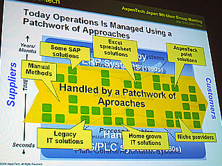 しかし、生産スケジューリングや製品の品質・信頼性・生産性、単位コストの最適化など、オペレーションの変化に対応するためのIT領域はこの20年間にバラバラな技術が導入されてパッチワークのような状態であり、当然のことながら上位のERPや下位のDCSとの情報統合化も図られていない」と論じた。