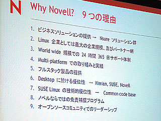 さらに、同社はかつてのUNIXシステムVのオーナー企業として、SCOに事業売却後もUNIX関連の知的所有権を保持しており、著作権侵害による訴訟から利用者を保護することができるという。7月から具体的な免責補償プログラムとして提供する計画で、「SCO社の訴訟ビジネスはNovell SUSE LINUXには通用しない」ということだ。