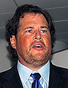 7日に東京・六本木ヒルズで開かれた発表セミナーに登場したマーク・ベニオフ会長兼CEOは、「コンピューター利用のアーキテクチャーは、1970年代におけるレガシーのメインフレームから、1990年代にWindowsやUNIXを中心としたクライアント/サーバー型へと変化したが、これからのインターネット時代はオンデマンドサービスに基づくわれわれのアーキテクチャーが主流になる」とし、今回のSummer '05で具体化させた“セールスフォース・オンデマンドアーキテクチャー”(SODA)を紹介した。