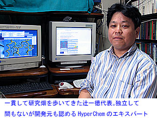 開発者の辻代表は東京大学大学院などで学んだ有機合成化学者/理論化学者で、学生時代からのHyperChemのヘビーユーザー。専用スクリプト言語を使った開発ツールにも精通しており、その知識を用いて今回の製品を開発した。