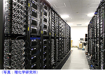 2006.06.20−理化学研究所は19日、日本SGIおよびインテルの協力を受け、1ペタFLOPS(1秒間に1,000兆回の浮動小数点演算)の性能を持つ分子動力学(MD)計算専用の「MDGRAPE-3システム」を構築したと発表した。約4,800個の独自のMD計算専用LSIを搭載し、大規模なPCクラスターを組み合わせた構成。MD計算専用ではあるが、既存の最高速スーパーコンピューターと比べて3倍の理論ピーク性能を達成している。たん白質のシミュレーションを通じて新薬開発に役立てていくことにしている。