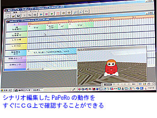 最大の特徴は、PaPeRoを動かすシナリオプログラムが、実機を離れてパソコンやPDAなどに転送できること。これにより、家の中でレストランの情報をPaPeRoに探させ、今度はPaPeRoをカーナビに転送して現地までの案内をさせ、最後にPaPeRoをPDAに移して店内に持ち込み、おすすめ料理などの情報をさらに検索させるといった使い方が可能になる。