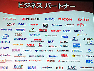 同社のビジネスパートナー7,000社のうち、現時点で約300社が今回の新製品に具体的な対応を表明しており、イベントでは富士ゼロックス(エンタープライズコンテンツ管理)、大塚商会(セキュリティ設定サービス)、NEC(エクスチェンジサーバーとシェアポイントサーバーの統合サービス)、リコー(オフィスを利用したコミュニケーションソリューション)、日本ユニシス(シェアポイントおよびエクスチェンジのソリューションサービス)が、それぞれのビジネス展開を紹介した。