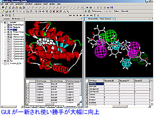 具体的には、既知の活性化合物の情報からファーマコフォアモデル(ある薬理活性を示すために必須の構造的特徴をモデルとして表現したもの)を作成し、標的たん白質の活性部位の構造との相互作用を調べる“構造ベースファーマコフォア解析”(SBP)までを一貫して行うことが可能。 Catalystの機能を単純に移行させるのではなく、最新の理論や手法を取り入れて機能強化が図られている。