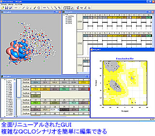 今回の新GUI「ProteinEditor」では、このQCLO計算シナリオを自動生成または視覚的に編集する機能を持ち、計算の実行支援や収束過程の情報を表示することができる。また、これまでは計算の準備として、読み込んだプロテインデータバンク(PDB)データに水素を付加したり、エネルギー極小化によって構造を最適化したりするために外部のソフトを使う必要があった。計算結果の解析でも、静電ポテンシャルなどを表示するために外部ソフトを組み合わせなければならなかったが、今回のGUIにはこれらの機能が完全に組み込まれている。