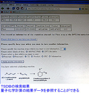 そこで、量子化学計算によって化合物の遷移状態を求め、それをもとに合成経路としての妥当性を検証しようというのが堀教授らのグループの発想。量子化学計算には時間がかかるため、あらかじめ計算済みの「遷移状態データベース」(TSDB)を構築しておき、反応解析を短時間で行えるようにしようという狙いである。