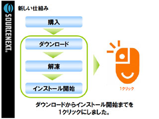 また、同社は、ソフトのダウンロード販売を伸ばすため、ワンクリックだけでインストールまでを全自動化させる「1クリック・ダウンストール」(特許出願中)を9月から開始すると合わせて発表した。