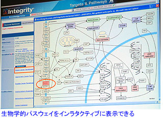 また、2つ目と3つ目はこれまで一緒になっていたのを分割し、「ターゲット&パスウェイ」および「ゲノミクス」として整理しなおした。「ターゲット&パスウェイ」では、さまざまな切り口から生物学的パスウェイをビジュアルに理解することが可能。注目するポイントを変更すると、マップ表示もインラタクティブに切り替わるようになっている。新しい「ゲノミクス」は分子生物学的な視点を重視してつくられており、たん白質を遺伝子の機能としてとらえているなど、さらに理解しやすくなっているという。