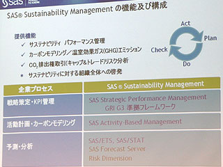 こうした企業パフォーマンス管理の手法を環境分野に持ち込んだものが今回のソリューションで、実績豊富なSASのビジネスインテリジェンス(BI)プラットホームが下敷きとなっている。