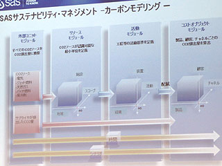 2008.07.11−SAS Institute Japanは9日、企業が社会的責任をふさわしく果たすサステナビリティ(持続可能性)経営を行うことを支援する観点で、新たに環境ソリューションを提供すると発表した。企業活動にともなう二酸化炭素排出量を定義し、収益性と環境配慮を両立させる最適なバランスをシミュレーションすることが可能。排出権取引など、新しい市場のリスク管理などにも対応することができる。ソフトウエアのライセンス価格は最小構成で約3,000万円。25日から出荷開始するが、年内に5社程度の受注を見込む。