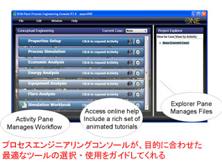 とくに、プロセスシミュレーターなどの高度なエンジニアリングツールを活用することにより、5−30%の投資コスト削減、5−20%のエネルギーコスト削減が達成されるという。なかでも、目的に合わせて複数のツールを使いやすくナビゲーションする“プロセスエンジニアリングコンソール”を備えており、海外の生産拠点の未熟練のエンジニアであってもグローバルにコラボレーションしつつ、高度な技術成果をあげることが可能。シミュレーションと一体化して、概念設計の段階で経済性評価までも行うことができ、技術的代替案とビジネス代替案の両方を検討できることは大きなメリットになるという。