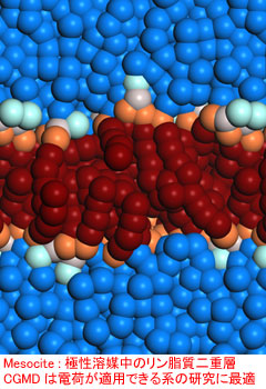 2つ目の新エンジンは「Mesocite」。流体力学を基礎とした散逸粒子動力学法(DPD)またはニュートン力学ベースの粗視化分子動力学法(CGMD)のどちらかを用いることができる。DPDエンジンは以前から提供されているため、CGMDエンジンが新規に用意されたことになる。