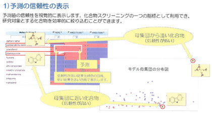 また、予測値を算出する場合、調べたい構造がモデル母集団の中に存在すれば、予測値ではなく元の実測値を表示することができる。社内のデータをモデル作成に使っていれば、入力構造の予測と社内データベースの検索を同時に行うことになるので、手間が省け効率が向上する。