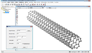 さて、今回の最新版2.3だが、大きな機能強化としてカーボンナノチューブビルダーが搭載された。最も基本的な単層ナノチューブの幾何学構造を決定するカイラル指数(n,m)を指定することでナノチューブ構造を任意の大きさで一気に生成することが可能。この方法で3種類ある幾何学構造を簡単にモデル化できる。例えば、アームチェア型は(10,10)、ジグザグ型は(9,0)、カイラル型なら(10,5)などと指定する。モデリングの手間が大幅に削減される。