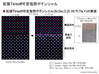 一方、今回のバージョン2.4での新機能の目玉は、分子動力学計算での拡張Tersoff可変電荷ポテンシャルの追加だが、これは実装が若干遅れており、実際には修正リリースの2.4.1での搭載となる。シリコン、ゲルマニウム、酸素、ジルコニウム、ハフニウム、チタン、タンタル、イットリウムのポテンシャルに対応。異種材料界面での挙動のシミュレーションが精密に行える。