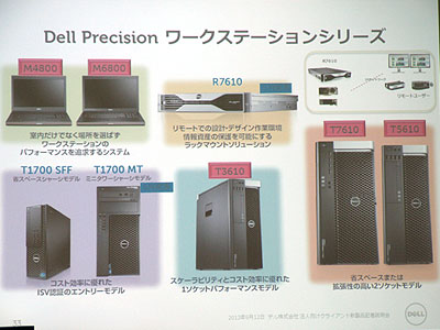 今回の新製品は、タワー型の「Precision T7610」(38万1,045円から)、「同T5610」(27万4,995円から)、「同T3610」(19万9,980円から)、ノートブック型の「同M4800」(24万9,980円から)と「同M6800」(23万7,980円から)−の合計5モデル。