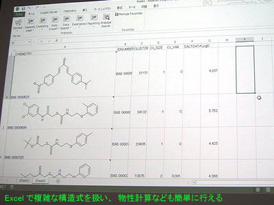 一方、「Accelrys Insight for Excel」は、表計算ソフトのExcelに化学構造式を扱う機能などを組み込むためのアドインソフト。アクセルリスが提供してきたISIS for Excel、Isentris for Excel、Accord for Excelを統合する後継製品という位置づけになる。