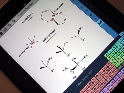 タッチ操作で構造式を作図するソフトで、よく練られたユーザーインターフェースを備えている。とくに、「フリック・トゥ・シェア」と呼ばれる機能が売り物で、作図した構造式をフリックすると、任意の研究仲間などにその情報を簡単に送信することが可能。移動中などにひらめいたアイデアをさっと書き留め、それを直ちに研究チームで共有するなどの使い方が想定されている。