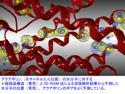 また、新たに提供された水分子配向プログラムは、水の酸素原子と水素原子の確率密度を求め、水分子の向きを考慮した水分子の配置を予測することが可能。実際にPDBのX線結晶構造データとの比較検証を行い、とりわけ結晶水の配置が正しく予測できていることを確かめたという。これにより、水との相互作用をより正確に考慮できるため、ユーザーの関心は非常に高いということだ。(左写真参照)