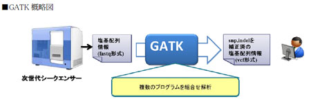 GATK自体は約70のプログラムから構成され、NGSが出力した大量データから遺伝子の変異解析を行う機能を備えている。腫瘍のサンプルを用いて特定のがんの重要な体細胞変異を発見したり、遺伝疾患の配列変異に関係するバイオマーカーを発見・予測したりする目的で利用されている。複数のプログラムを組み合わせた解析フローが構築できるほか、NGSのBAMファイルを事前チェックすることでデータ品質を高めて、データ解析をより正確に効率的に行うことができる。2つの遺伝子変異検出機能を組み合わせて、解析結果を高精度化することも可能。
