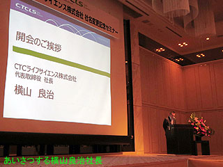 2014.05.17−CTCライフサイエンス(CTCLS)は15日、東京・北品川の東京マリオットホテルで「社名変更記念セミナー」を開催した。製薬企業など顧客150人を招待したほか、社員やパートナーなどを含めて参加者が200人を超える大規模なイベントとなった。同社は4月1日付で旧社名の「シーティーシー・ラボラトリーシステムズ」を新社名「CTCライフサイエンス」に変更したばかり。主要顧客である製薬業を巡る環境が大きく変化する中、これまで基盤としてきた研究開発領域だけでなく、グローバリゼーションを含む製薬企業のICT(情報通信技術)課題を包括的に解決することを目指して、親会社である伊藤忠テクノソリューションズ(CTC)との協調を推進・強化していくとした。