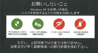 WindowsXPの発売は2001年10月。2007年1月の段階で、2014年4月にサポートを終了することを発表していた。ちょうど1年前の昨年4月9日から「移行支援強化期間」に入り、周知・啓発や最新環境への移行推進・支援活動を展開してきていた。