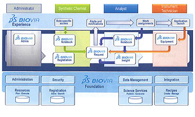 また、バージョン9.2から業界標準のRESTベースのウェブサービスに対応し、新しいモバイルコンポーネントコレクションを追加したことで、iPadなどのデバイス(アンドロイド対応も開発中)からオンプレミスまたはクラウドへの接続が可能。それに加え、バージョン9.5では複数アプリケーションへのシングルサインオン、すべての科学データ/ラボデータへの監査付きでのアクセス、科学サービスやアルゴリズムへの共通アクセス−などの機能強化が施されている。全体として、個別のアプリケーションを中心とした視点ではなく、業務の流れの中で必要なアプリケーションが連携して働くイメージになるようだ。