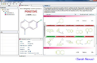 とくに、新しく開発された「Sarah Nexus」は、毒性予測で長年の実績を持つ「Derek Nexus」を補完する位置づけとなるもので、統計的アプローチによる変異原性予測機能を持っている。化合物のフラグメント構造それぞれの毒性傾向を示した“Hypothesis”の総和によって化合物全体の毒性を評価する。予測結果の根拠データへのアクセス、レビューも可能。それぞれの構造フラグメント情報と、変異原性に対する陽性/陰性の判定、予測の信頼値が示される。