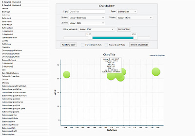 とくに、新しく追加された「ArxLab FT」は、各アプリケーションのデータベース内のカラム情報を自由に参照することが可能。スキャッタープロットやバブルチャート、ヒストグラムなどの機能を利用し、アッセイデータをさまざまな角度から分析することなどが簡単な操作で行える。スポットファイアーのような高度な機能はないが、ベンチケミストが手元で自由にデータ分析をしたいというニーズにはかなっているという。クラウド上のデータだけでなく、社内データベースから指定したカラムデータをアップロードし、全体を統合して分析する機能も用意されている。