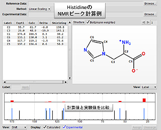 一方、低分子対象の機能としては、13C-NMR解析機能が注目されている。これは、量子化学計算プログラムGaussianを組み合わせて利用する機能で、リガンド配座をGaussianで構造最適化し、各配座について13Cの遮蔽定数をGaussianで推算することができる。計算結果を可視化し、実験値と計算値の化学シフトを比較することにより、立体異性体の検出などに応用することが可能である。