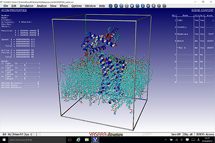 「YASARA Dynamics」に内蔵されているMDプログラムには膜タンパク質のシミュレーションを支援するユーザーインタフェースが組み込まれており、初めてのユーザーでも簡単に解析を行うことが可能。MDは自社開発品だが、GPUを利用した並列計算に対応していることも魅力。PCに内蔵された一般のグラフィックボードでも一定の効果が出るという。