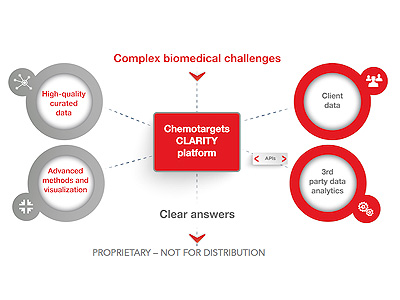 「CLARITY」は、プロウスインスティチュートが長年蓄積した豊富なデータベースと、ケモターゲットの特異なデータ科学/モデリング技術が融合した製品。化合物の有効性や安全性に関わる作用機序を予測し、活性や毒性、薬物動態、代謝物とその薬理学的影響といったプロファイリングを行う機能がある。化合物ライブラリーのバーチャルスクリーニング、標的タンパク質決定後の解析、ドラッグリポジショニング、潜在的な毒性や安全性の問題の予測、オフターゲットの相互作用の判別、代謝物に関連する安全性問題の把握などに活用できる。