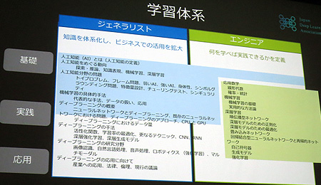 活動で注目されるのは、ディープラーニングの資格制度をスタートさせること。これには、ディープラーニングを実装するエンジニアの技能を認定する「E資格」(エンジニア資格)と、ディープラーニングを事業に生かすための知識を有しているかを検定するビジネスマン向けの「G検定」(ジェネラリスト検定)の2種類がある。それぞれ、2020年までに3万人と10万人を育成することを目標としている。
