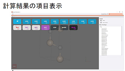 現在の計算機能は、SCF計算、構造最適化、バンド構造、状態密度、第一原理MD、古典MD、TD-DFT(UV可視スペクトル)、Phonon(バンド、状態密度、比熱、IRスペクトル)など。計算エンジンに自社のAdvance/PHASEを使用することもできる。
