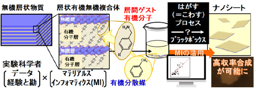 近年、グラフェンなどのナノシート(2次元ナノ材料)が注目されているが、その製造プロセスは層状物質の構造をはがす(壊す)ことによって行われるため、量産化に向けた収率の向上、特性に関係するはがすサイズや表面の状態の制御を行うことが難しく、課題とされていた。