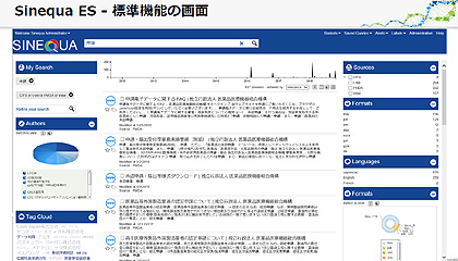 シネクアの「SinequaES」は、非構造化データを含む内外の複数のデータソースに対して一括検索を行うコグニティブ検索エンジン。コグニティブという言葉は、索引・自然言語処理・機械学習を組み合わせて、非構造化および構造化データから関連した知識の集合体をつくり、テキスト・音声・可視化を通してナレッジを提供する検索の仕組みと定義されており、次世代のエンタープライズサーチの基本になるとみられている。