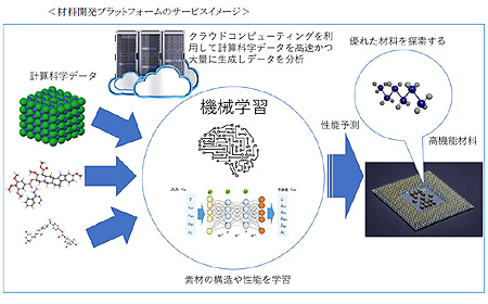 今回の「材料開発プラットフォーム」は、ナノスケールシミュレーションのクラウドサービス「Exabyte.io」による計算科学データを利用して、材料の分子構造や特性を人工知能(AI)が学習することにより、求められた物性を持つ素材の候補を割り出すというサービス。構築した予測モデルを利用することで瞬時に物性が予測できるようになるため、材料開発の大幅な期間短縮を図ることができるとしている。