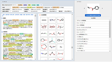 化合物の名称は、命名法による違いや慣用名、総称名、部分構造名なども判別できる名寄せ機能を搭載しており、網羅的な検索が可能。構造式での検索にも対応し、構造式の合致度が高いものを重要度が高い情報と判定するため、キーワードと構造式を同時に検索に利用することにより、精密なランキングで検索結果を表示できる利点がある。事前に実施した実証実験では、5日かかっていた化学文書の検索業務を1日で完了できることを確認したという。