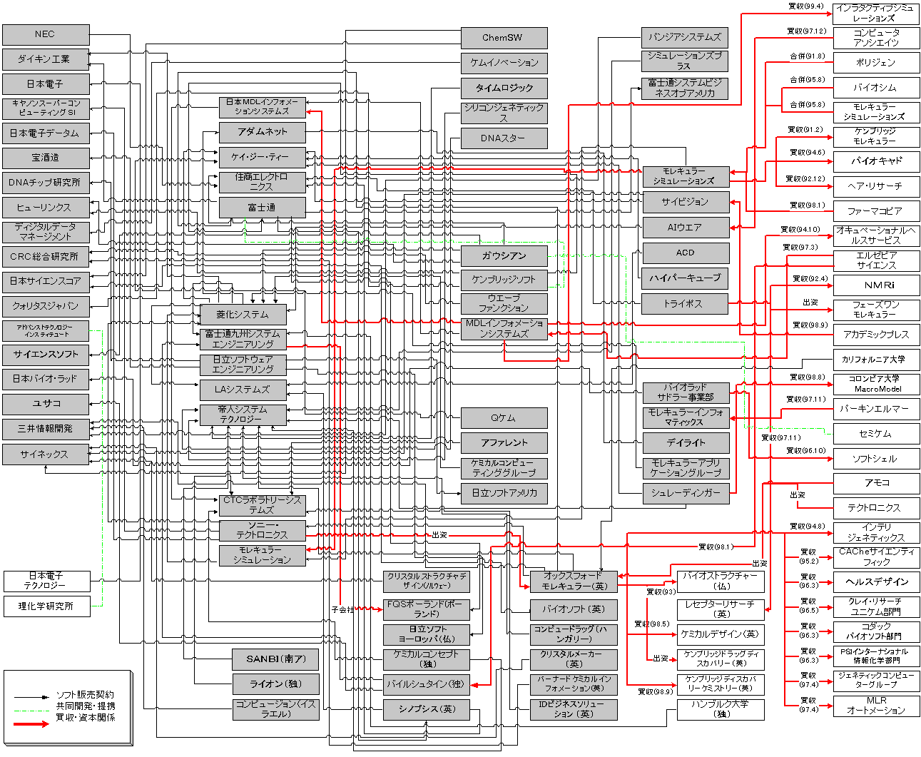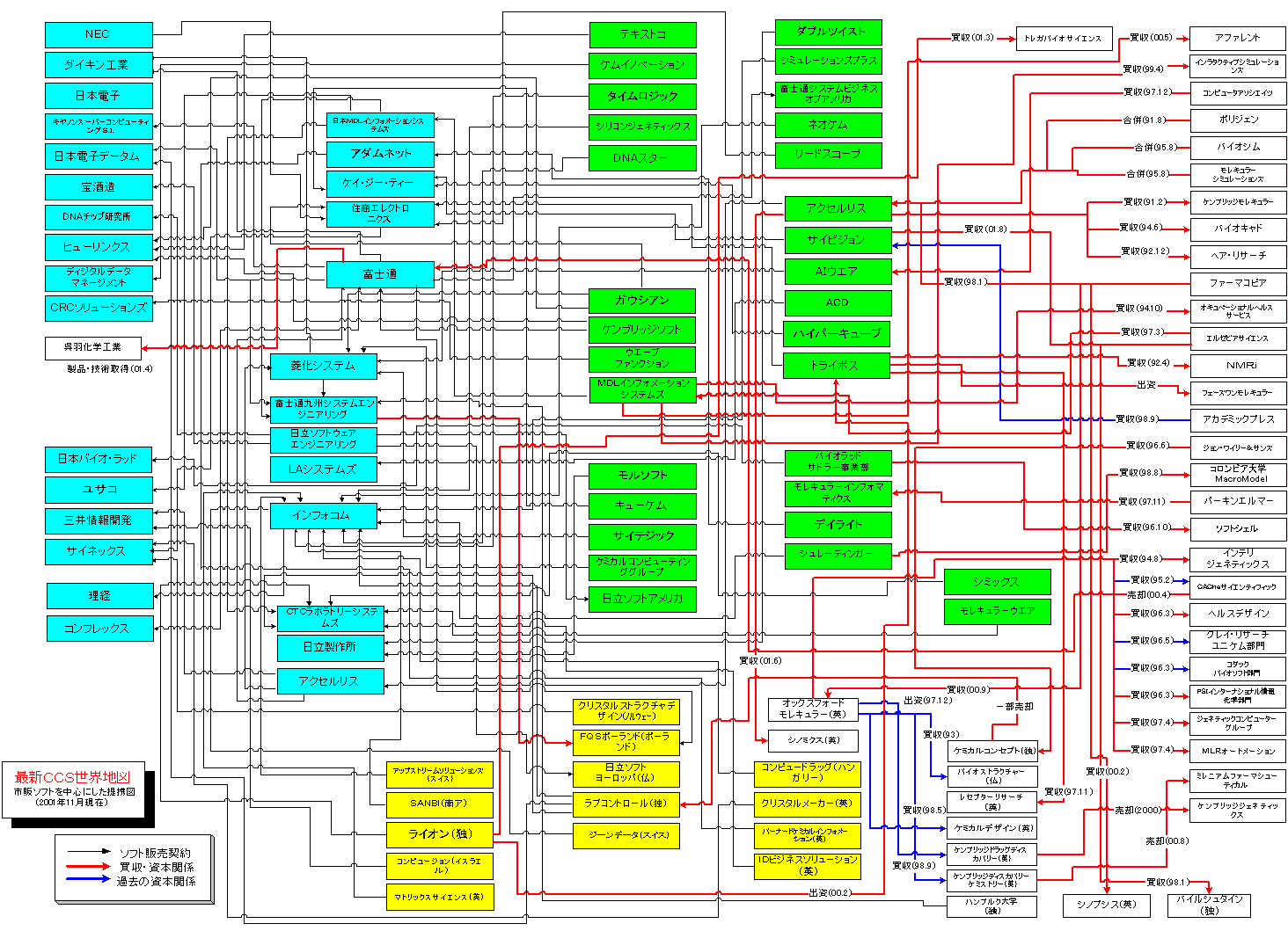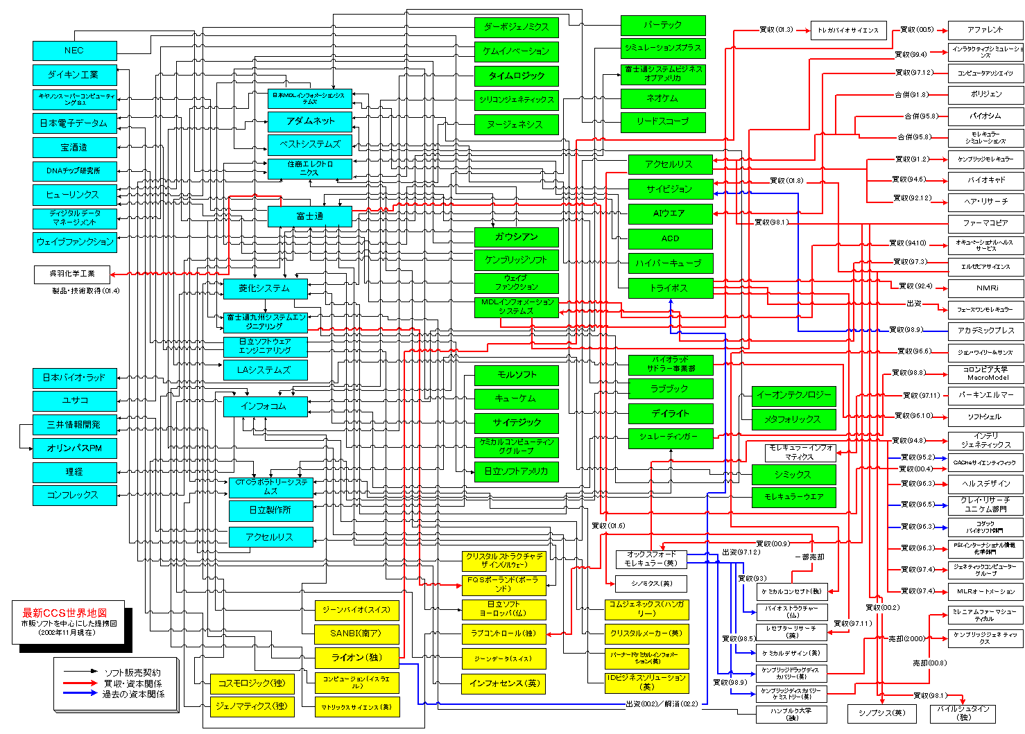 国内で市販されているCCS製品を中心にしたベンダー同士の提携関係をあらわしたものです。主に国内ベンダーと海外ベンダーとの関係をまとめてあります。
